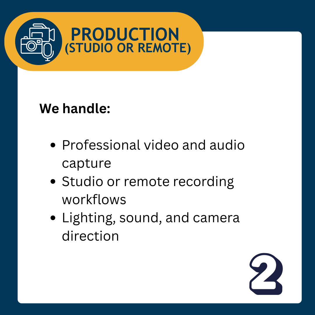 We provide end-to-end video podcasting services, so you can focus on the conversation, not the tech.