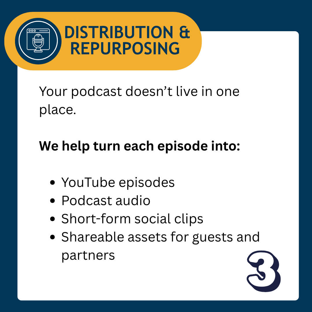This wide distribution increases discoverability, credibility, and long-term audience growth while ensuring your podcast meets your audience wherever they already consume content.